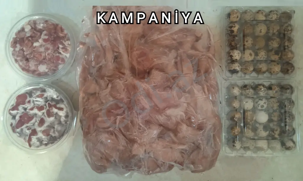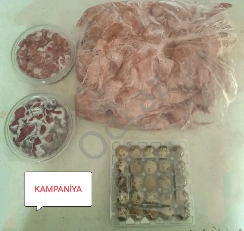 ➤ 25 ədəd Bildirçin Əti + Yumurtası 50 ədəd + Ciyər-Ürəyi və Pətənəyi. Cəmi: 50 ₼.