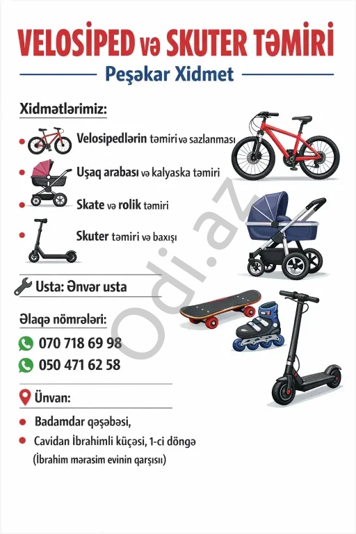 • 🚲Velosipedlərin 🦽 kalyaska uşaq arabası 🛹🛼skate 🛴skuter 👩‍🦼xadanok tam təmiri, sazlanması və texniki baxışı